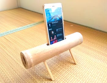 Par rapport aux autres haut-parleurs en bambou faits maison que l’on peut trouver en ligne, celui-ci se distingue par ses quatre pieds, qui lui donnent un style aérien et minimaliste.