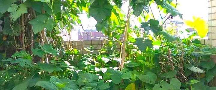 Sweet potatoes invading our rooftop garden in Taiwan.