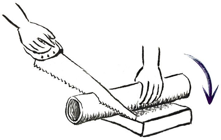 Astuce : tourner le bambou lors du sciage pour une coupe nette
