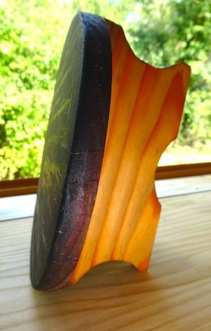 Dans ce morceau de bois, j’ai découpé un cercle de la taille de notre casserole de taille moyenne.
