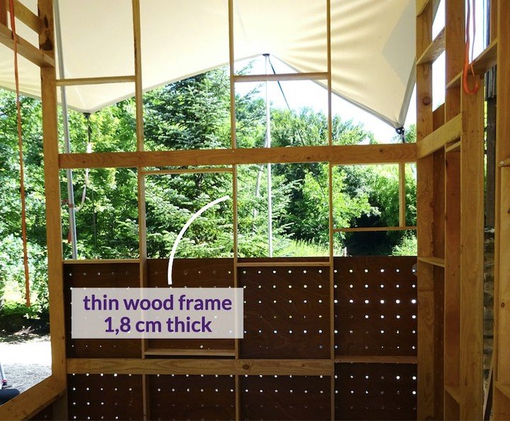 Heureusement, avec Hsiao, nous rendons visite à un menuisier, un cousin de ma mère. Il construit également sa propre tiny house. Il nous montre sa technique : des montants en contreplaqué de peuplier de 2,2 ×10 cm pour l’ossature, et des panneaux de 3 mm d’épaisseur pour le contreventement. Tout cela semble très mince.